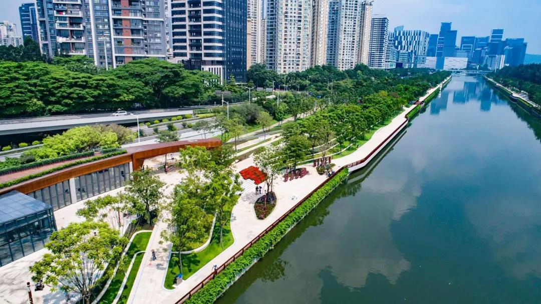 大沙河生态长廊景观项目分为上、中、下游段项目,设计范围从长岭皮水库溢洪道消力池出口由东向西流经长岭陂、福光、塘朗、平山,与西丽水库泄洪道汇流后折转向南,流经珠光、光前、大冲,穿过深南大道、滨河立交注入深圳湾,全线13.7公里,总面积85公顷(不含水域)。